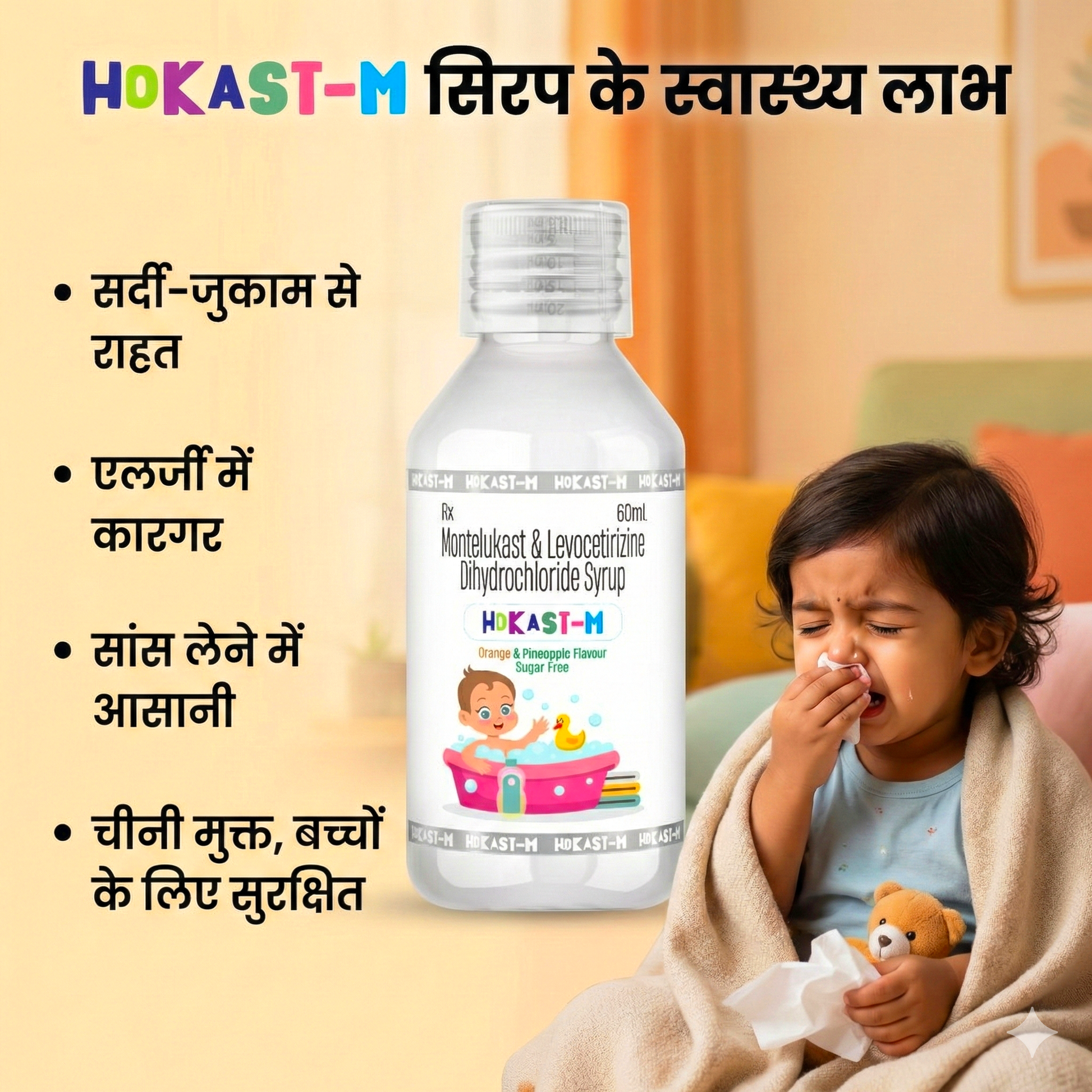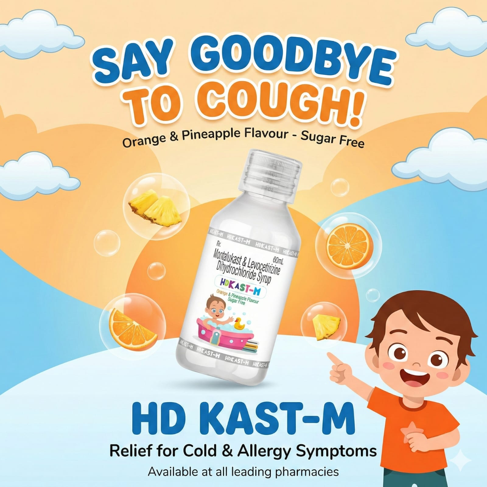 HDKAST-M Syrup is commonly prescribed in children to treat symptoms of allergy such as runny nose, sneezing, itching, swelling, congestion, and watery eyes. It may also help in the treatment of asthma and skin allergies.