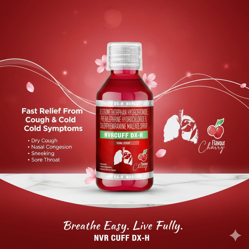 NVRCUFF-DX Syrup Sugar Free is a medicine used in the treatment of common cold and cough. It can provide quick relief from cough and common cold symptoms like runny nose, stuffy nose, sneezing, watery eyes, and congestion or stuffiness.